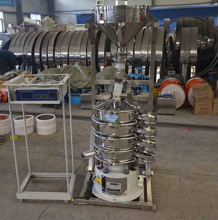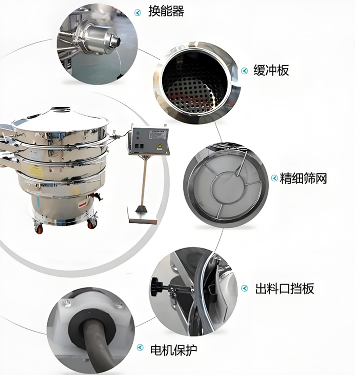 不同型号的超声波震动筛结构一致,主要由筛箱、振动电机、超声波系统、筛网、减震装置和机架组成。筛箱是物料筛分核心,内部筛网与超声波换能器配合,借高频振动破除物料团聚;振动电机提供基础振动力,可调节振幅适配不同筛分需求;超声波系统含发生器与换能器,保障高频能量均匀传递;减震装置能降低设备运行噪音与震动传递,保护周边环境;机架为设备提供稳定支撑,部分型号可调整高度以衔接生产线。