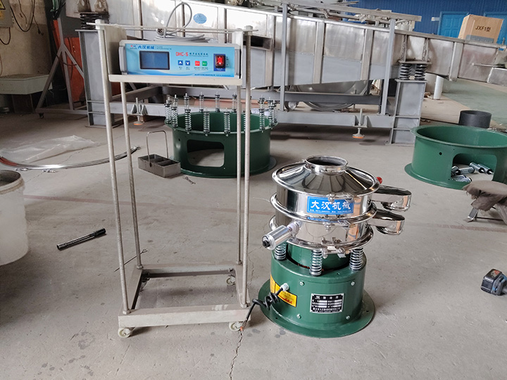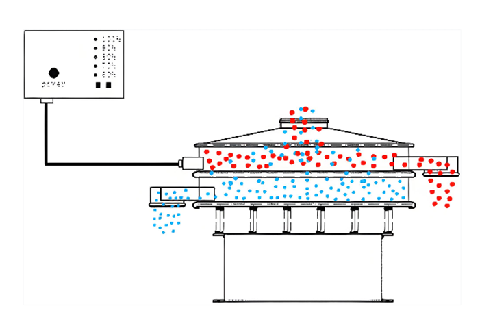 超声波高频振动筛主要由超声波系统、振动电机、筛框筛网、底座机架及进出料口组成。超声波系统包括超声电源、换能器与超声网架,为筛网提供高频微振;振动电机作为动力源,产生旋振动力使物料扩散、分层与输送;多层筛框搭配专用筛网实现精细分级,底座配减震器保证设备稳定运行。设备采用机械旋振与超声微振双重作用,结构紧凑、密封防尘、拆装维护方便,可有效破团清网,大幅提升湿粘、细粉物料的筛分精度与效率。
