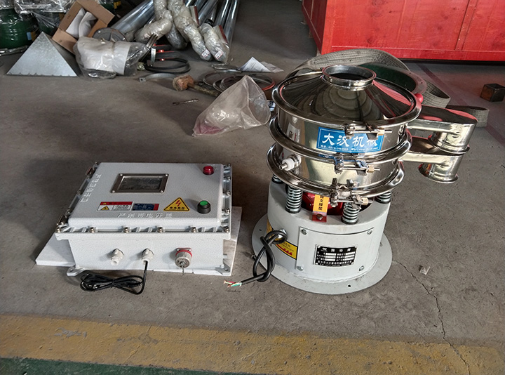 防爆电机提供旋振动力,配防爆电控箱与接地装置,满足防爆安全要求;超声波系统负责高频清网、防堵孔;筛框、筛网、进出料口采用不锈钢密封结构;外加减震底座、防静电装置,整体防爆、密封、稳定可靠,适合易燃易爆超细物料筛分。